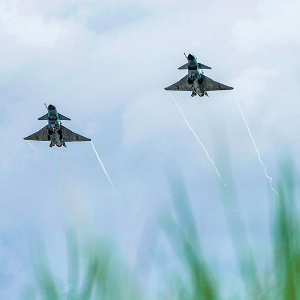 临近目标空域,为规避“敌”雷达搜索和防空火力打击,战机迅即下降高度,利用地形地貌隐蔽机动。