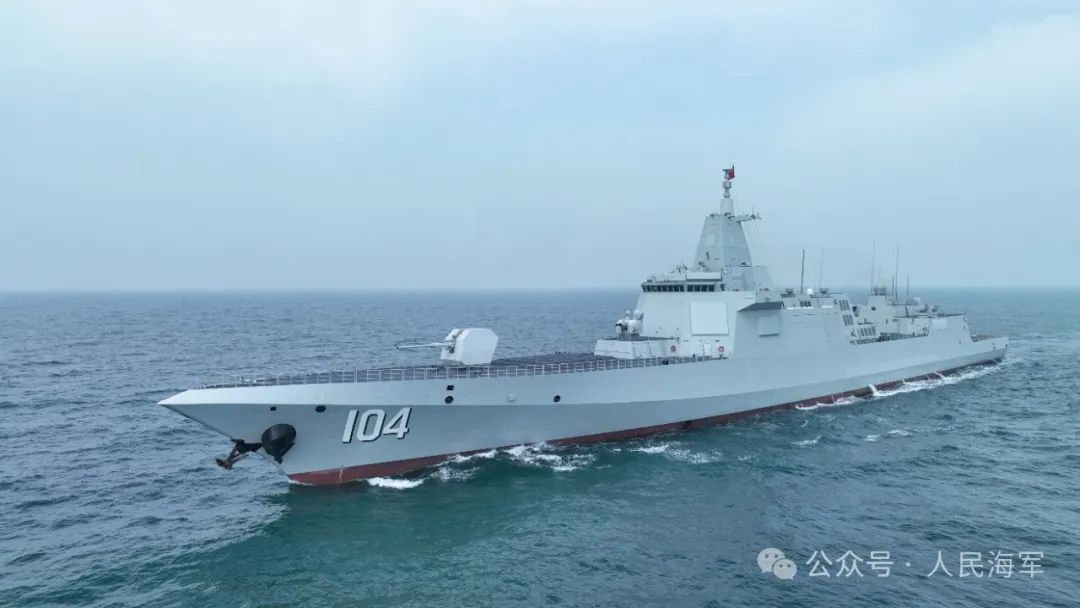 无锡舰,舷号104,是我国自主研制的新型导弹驱逐舰,具有对海、对空、反潜等多种作战功能,信息化水平高、综合作战能力强。该舰于2022年3月加入人民海军战斗序列,已完成十余项重大演训任务。