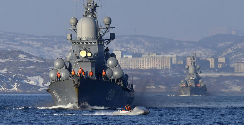 报道称,美国海岸警卫队一艘巡逻艇的船员看到俄罗斯海军舰船越过海上边界,进入位于美国领海之外的专属经济区。