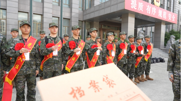 锣鼓震云霄,掌声撼大地。喜气洋洋的氛围充满在军营之中,带新干部骨干们为新战友精心准备了一份欢迎仪式。舟车劳顿消磨不掉他们的热情,刚下车新战友们昂首挺胸、步履铿锵地踏入军营,翻开他们精彩青春书页。