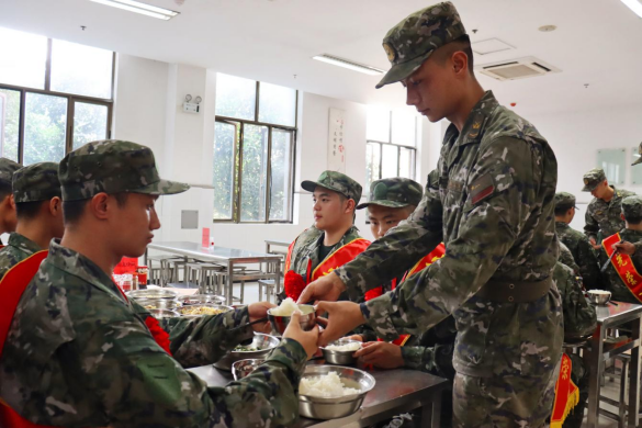 班长和蔼可亲的与新战友拉家常、谈心声,初步为他们介绍部队基本情况,在温馨的氛围里,拉近了彼此的距离。迎新饭、暖心面……让新战友们处处感受着军营的温暖,脸上洋溢着幸福的笑容。在这座温暖的军营里,不仅有亲密无间的战友情谊,还有严格规律的生活作息。