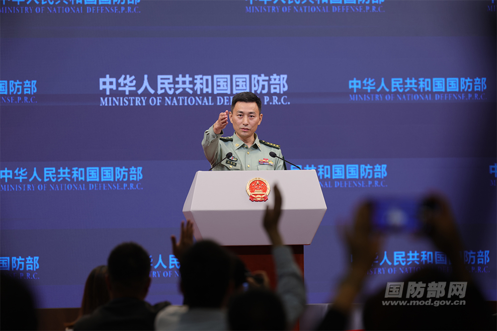 9月26日下午,国防部举行例行记者会,国防部新闻局副局长、国防部新闻发言人张晓刚大校答记者问。