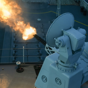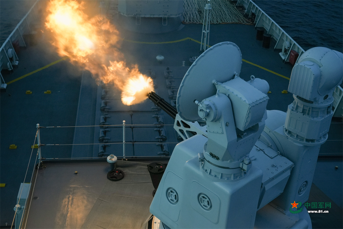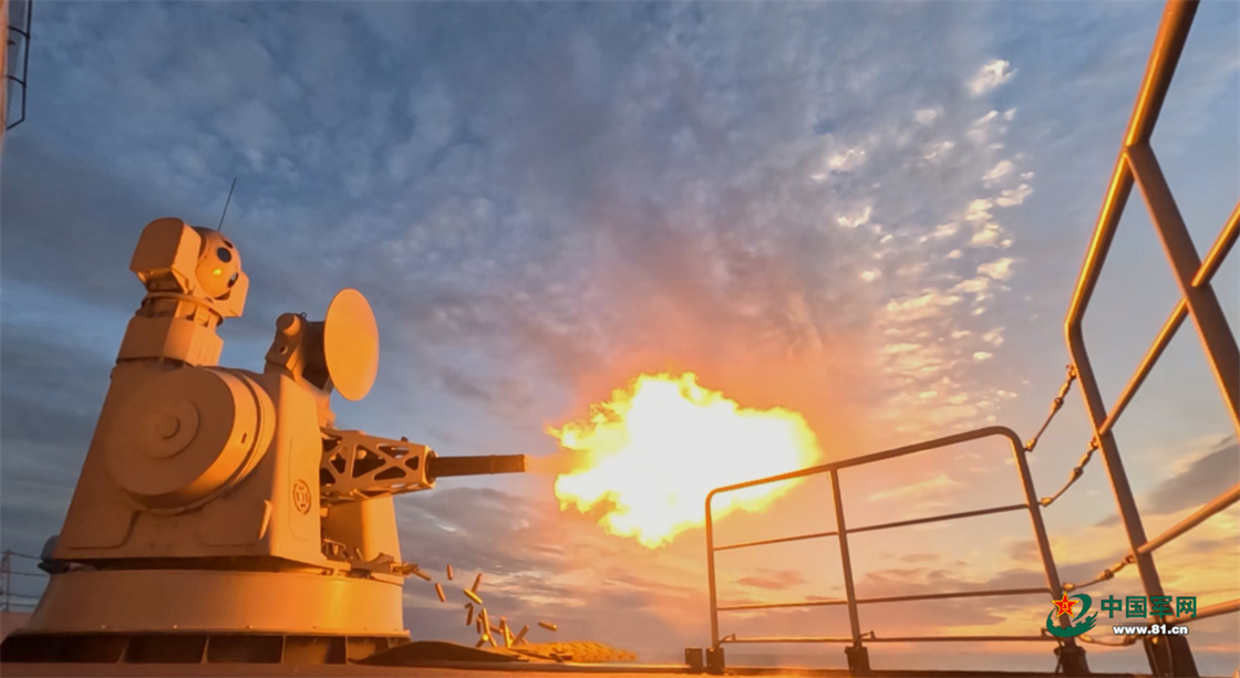 临沂舰副炮对空射击。
