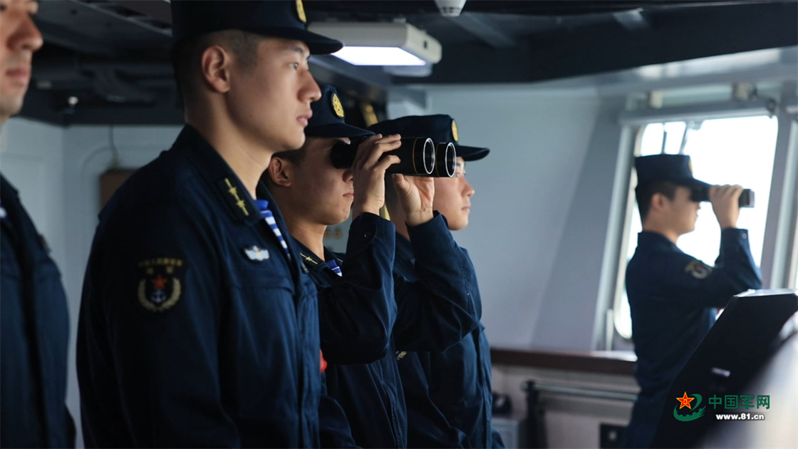 中方舰艇编队航渡期间,驾驶室人员值更。