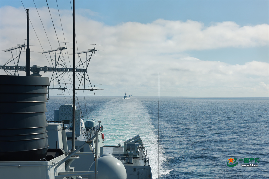 中方舰艇编队向演习会合区航渡。