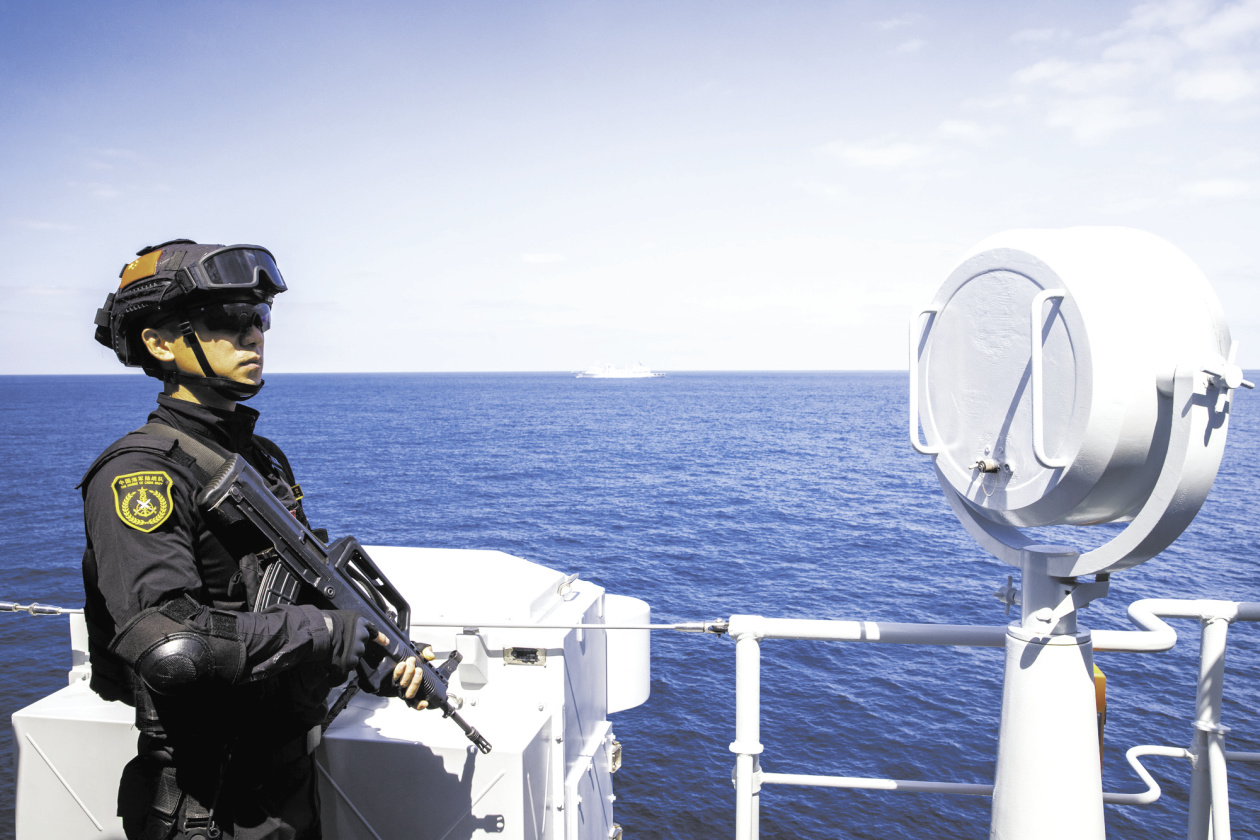 2020年5月21日,中国海军第35批护航编队为商船进行伴随护航。(视觉中国)