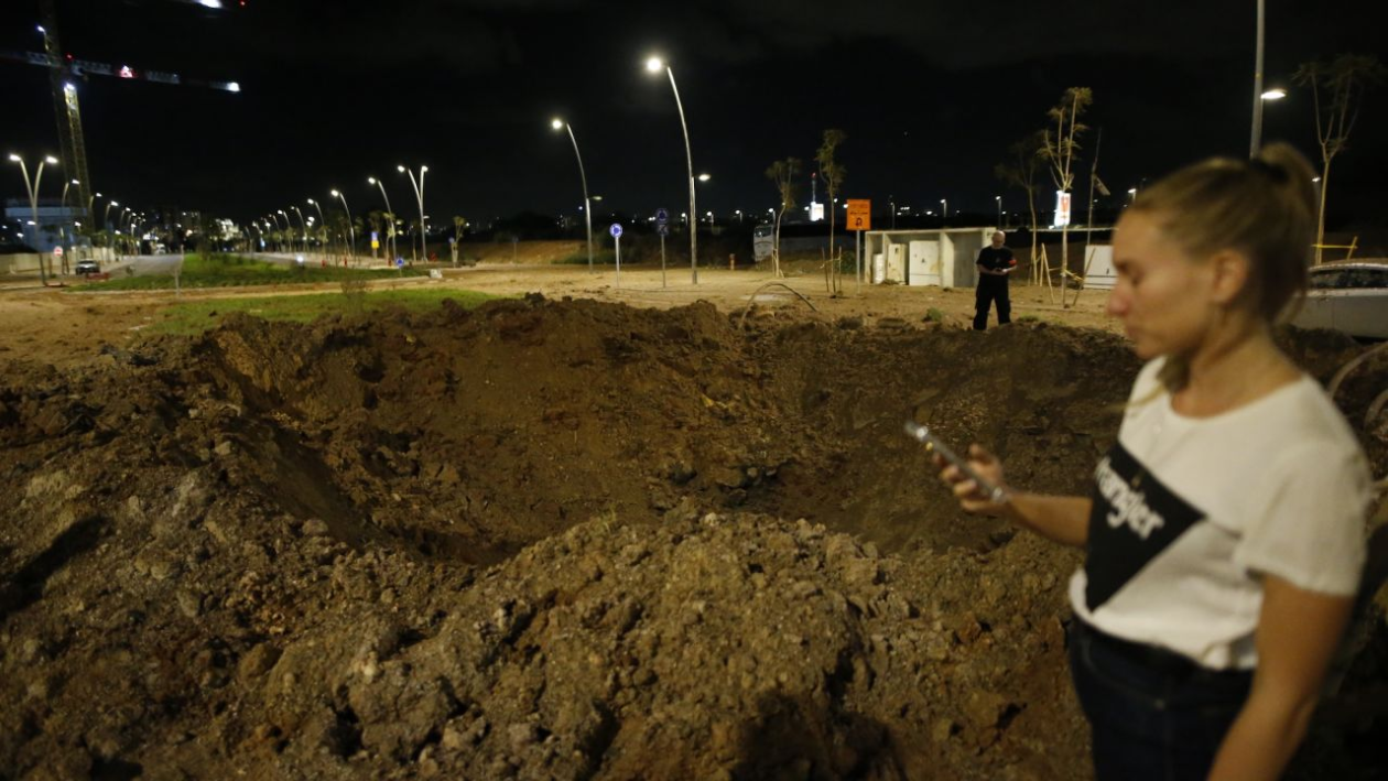 当地时间10月1日,以色列特拉维夫北部地面出现弹坑 图源:外媒