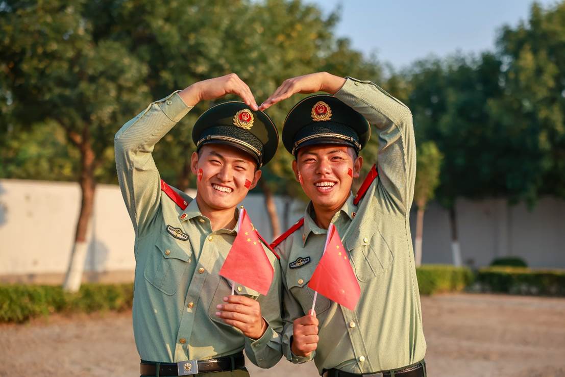武警山东总队淄博支队的官兵们向祖国比心,将自己和五星红旗定格在一起,用快门记录对祖国的美好祝福,祝愿伟大祖国繁荣昌盛、国泰民安!(杨一鸣、李保栋、衣文元、韦润宝、赵行)