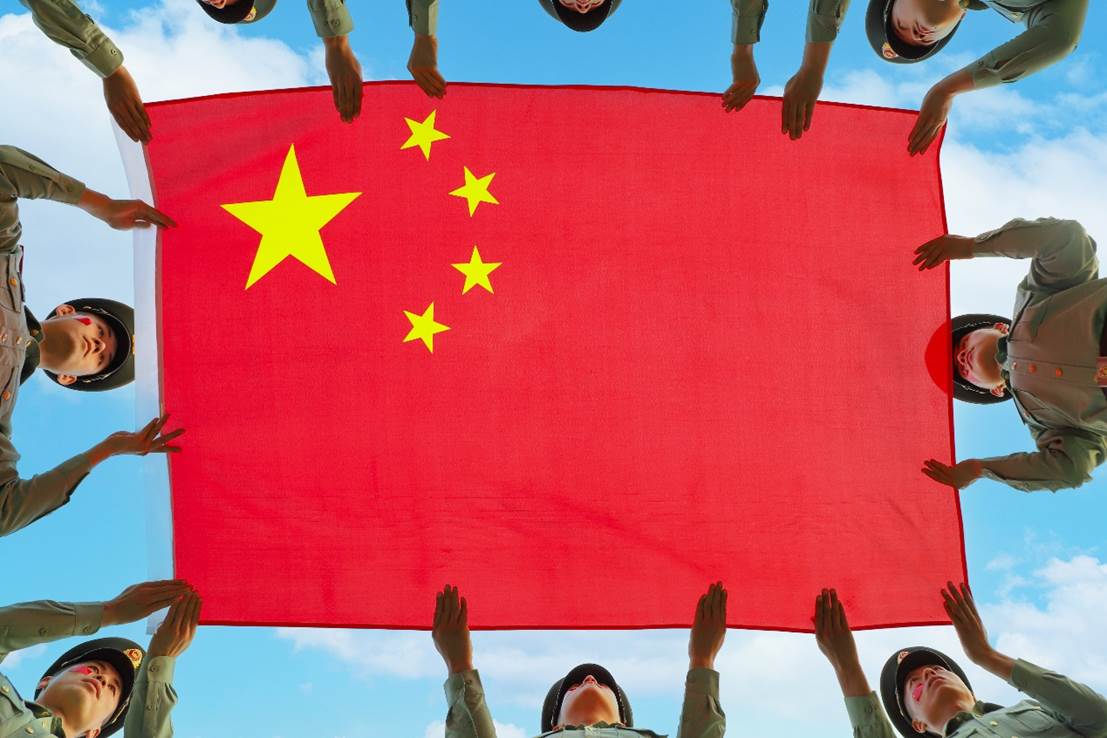 金秋十月,举国同庆,中部战区空军雷达某旅在任务一线描绘国旗。嘹亮的国歌、鲜红的国旗,爱国情怀在官兵心中激荡,他们目光追随国旗,以庄严的军礼向伟大祖国致以崇高的敬意和深深的祝福。(李国强、兰立华)