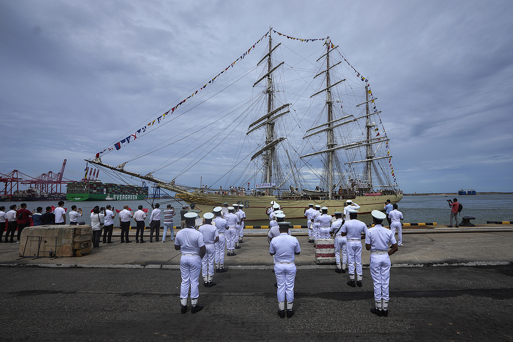 10月8日,中国海军“破浪”号风帆训练舰访问斯里兰卡。(新华视觉)