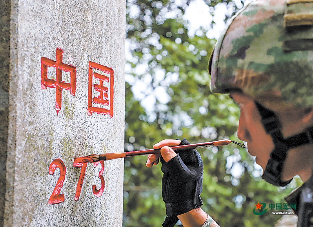 精心为界碑描红。