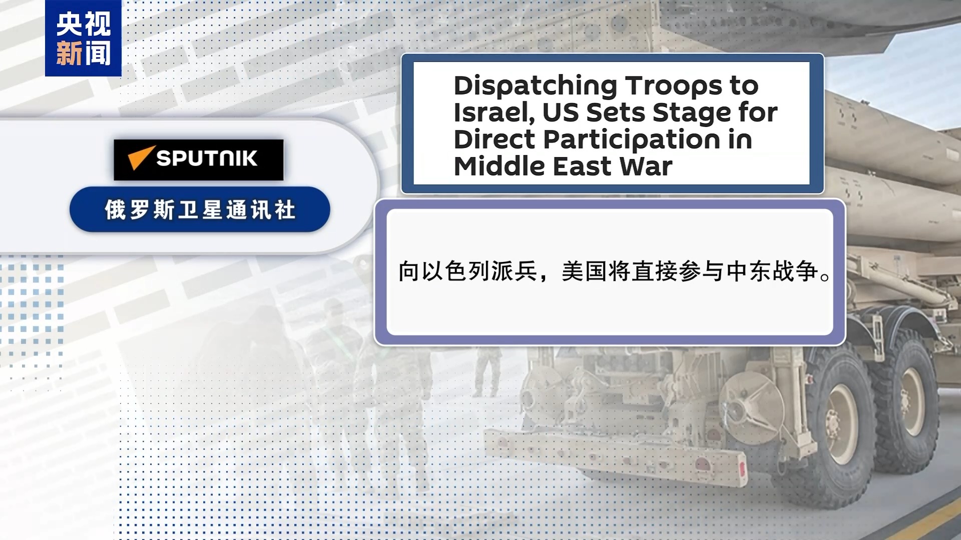 俄罗斯卫星通讯社在另外一篇报道中提到,“向以色列派兵,美国将直接参与中东战争”。文章说,有观察人士警告,美国现在公开向以色列派遣军事人员,一旦有美国军人受伤或死亡,美国就可能会直接出兵参战。