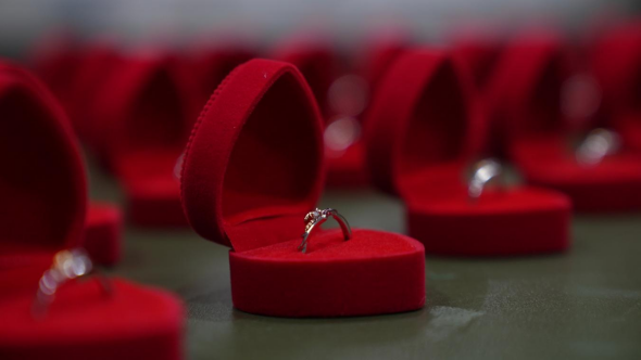 新郎为新娘戴上特制的军恋戒指