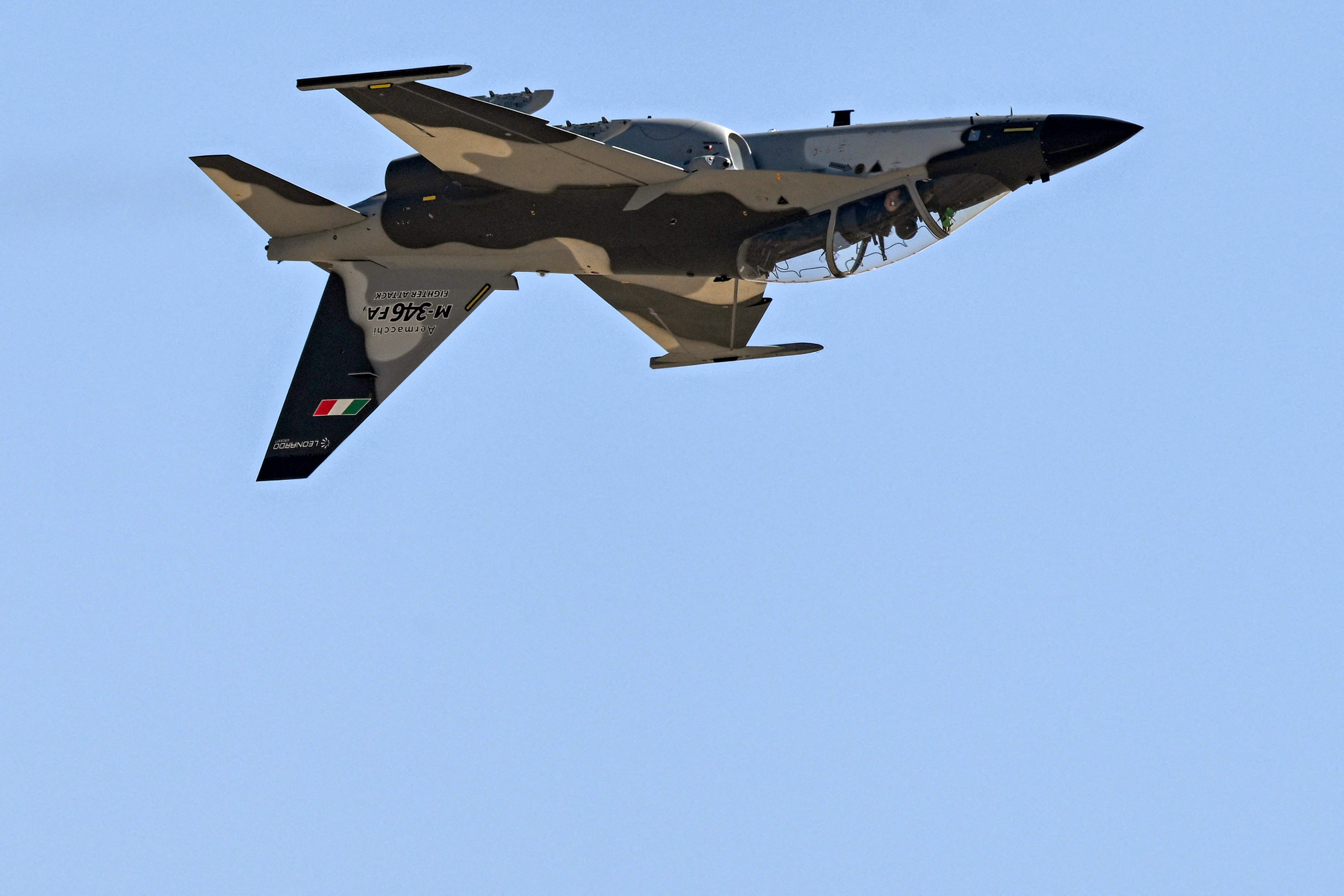 一架M-346攻击机在进行飞行表演(法新社资料图片)
