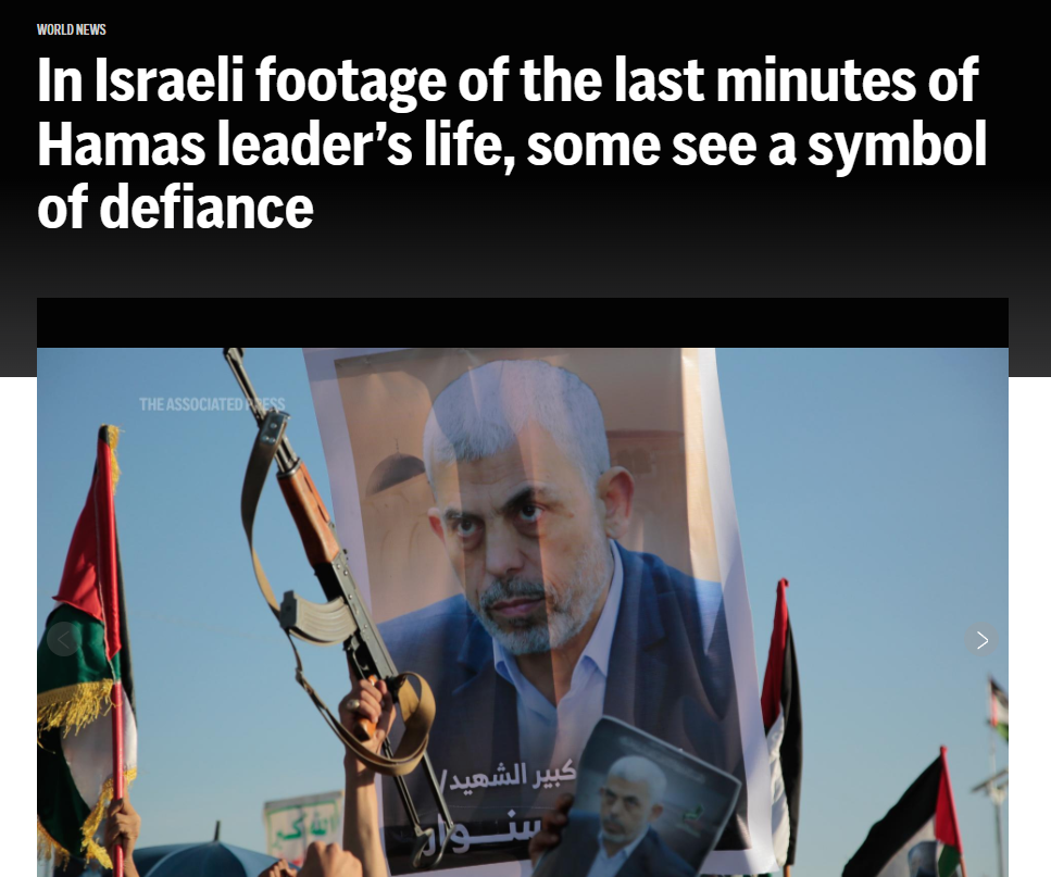 美联社在报道中称:“在中东,不管是否支持哈马斯,观众们在这段模糊的视频里看到的,是一位战斗到底的英勇烈士。”