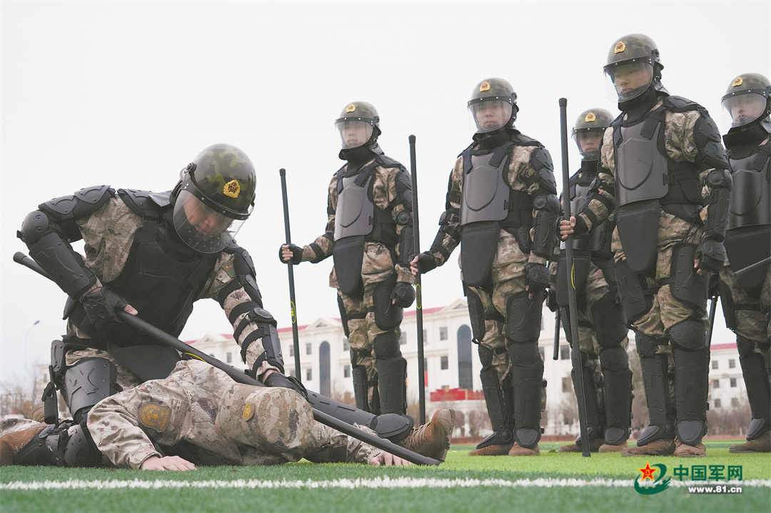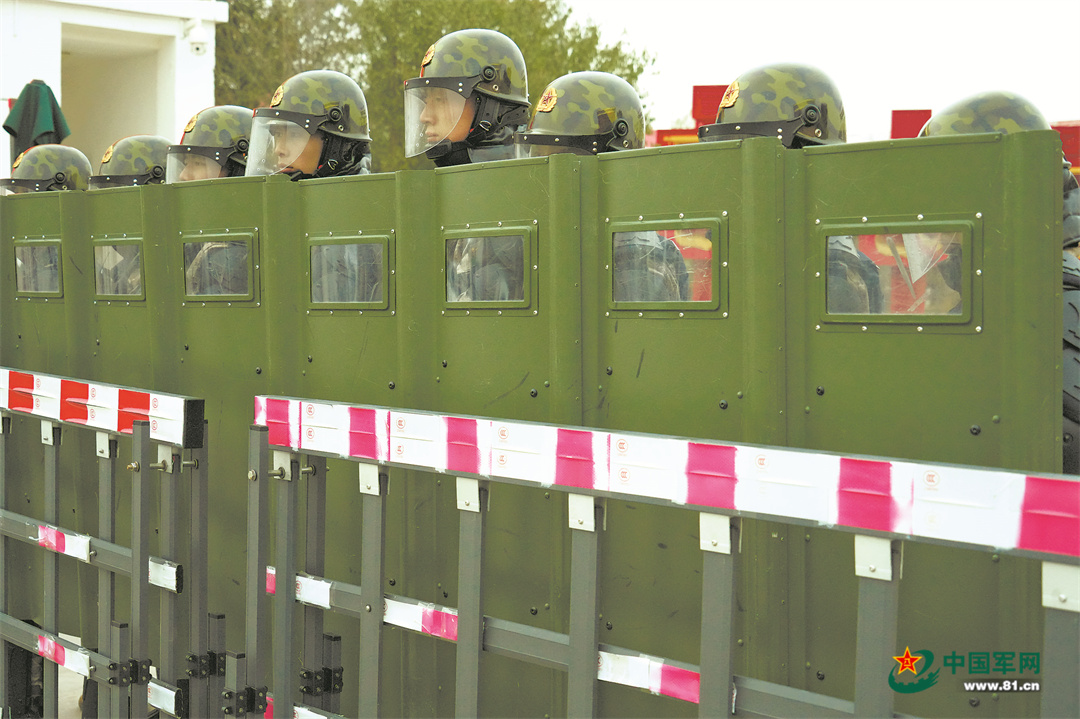 第81集团军某旅某连警卫排战士的工作日常,防暴训练。王子祥摄