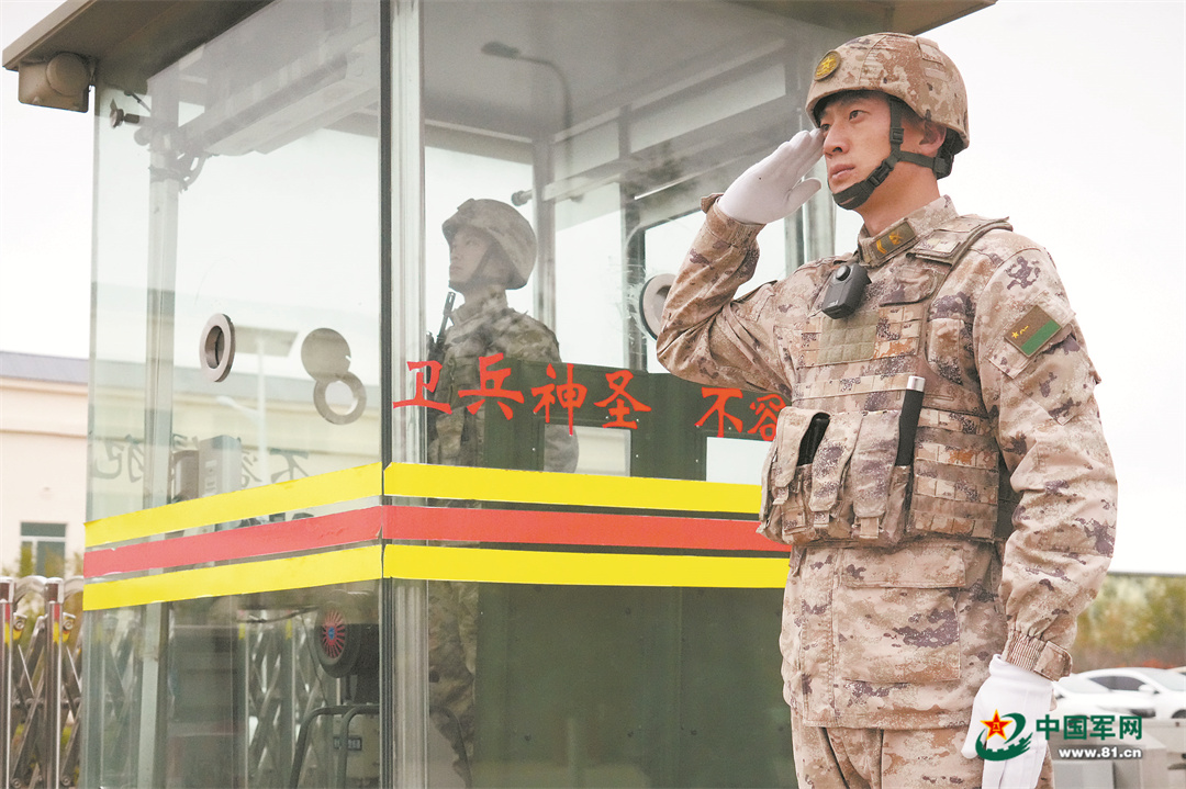 第81集团军某旅某连警卫排战士的工作日常,站岗执勤。王子祥摄