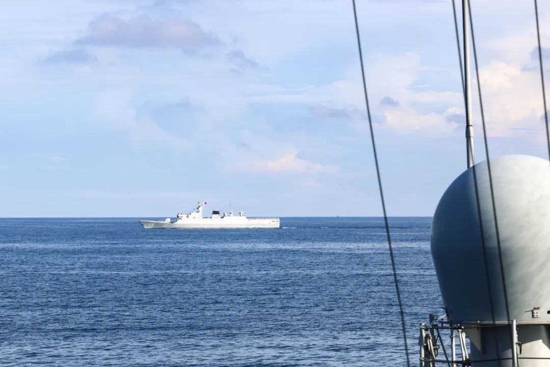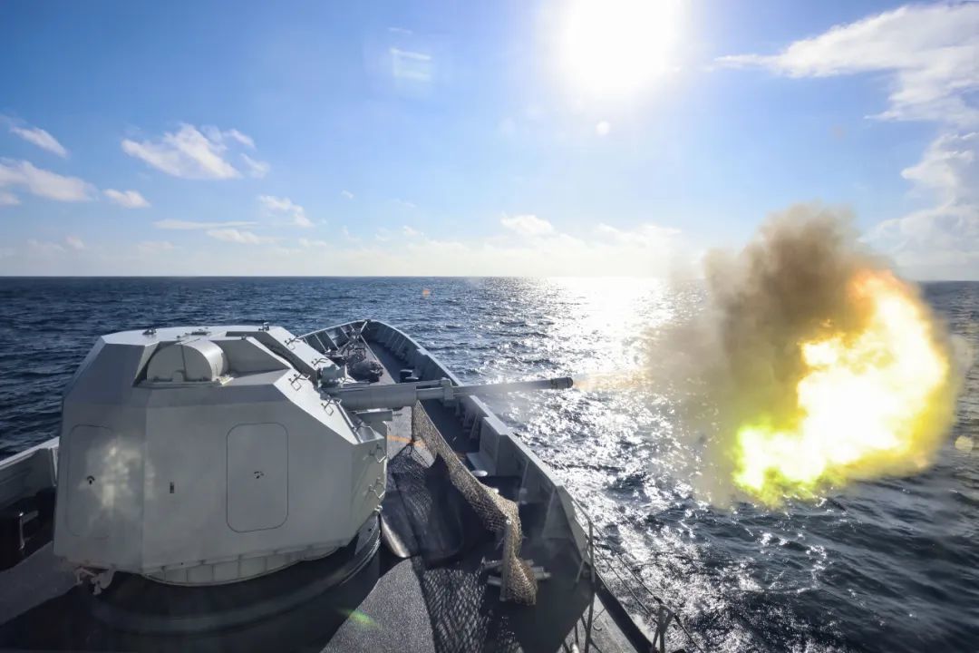 深秋时节,南海某海域波涛涌动、浪花飞卷。南部战区海军某护卫舰支队多艘舰艇进行了防空反导、对海攻击、舰艇损管等课目的全训考核。