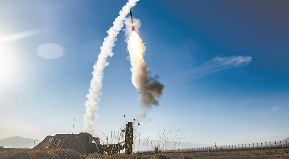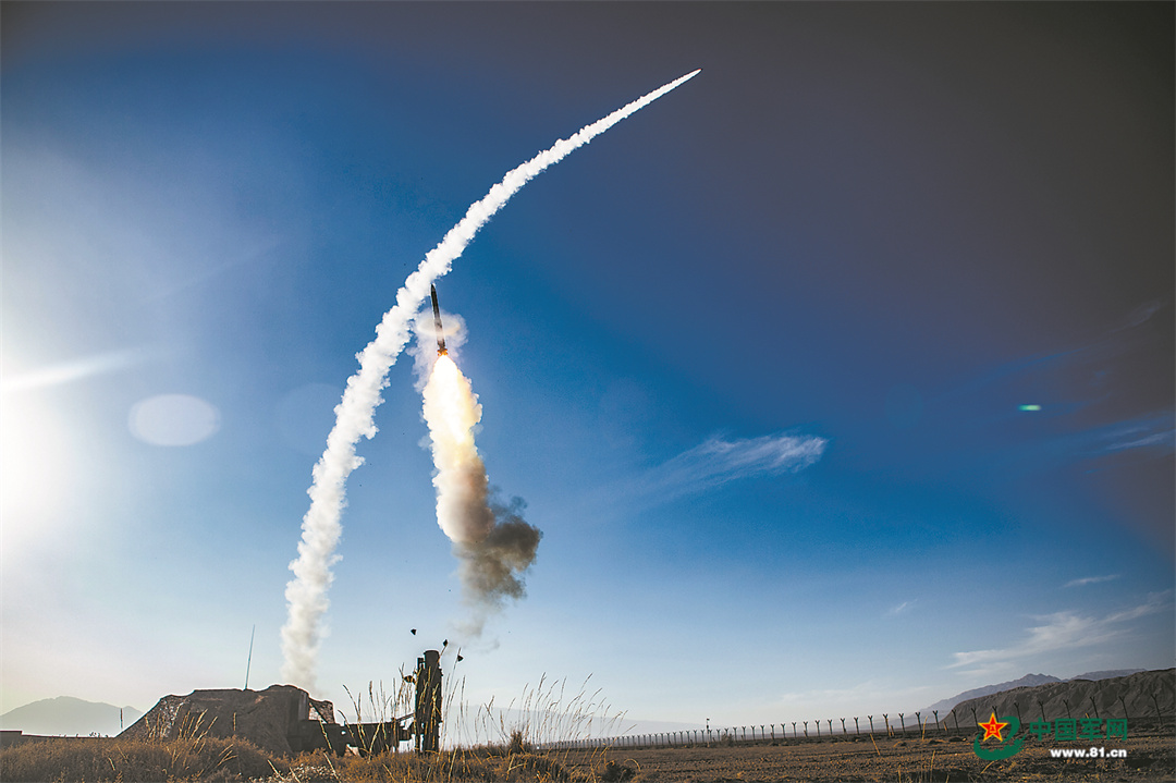 突然,雷达屏幕上出现杂波,“敌”机失去踪影。指挥员研判,“敌”机在进行超低空突防。不多时,近空补盲雷达捕获目标。各型雷达以不同方式对其进行持续锁定跟踪。一声令下,导弹呼啸而出,直扑目标。