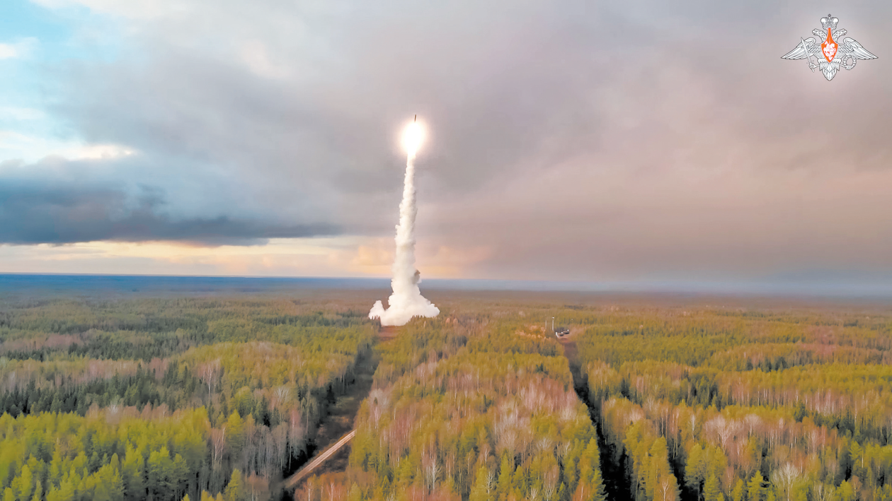 29日,一枚“亚尔斯”洲际导弹从俄罗斯普列谢茨克航天发射场发射。(视觉中国)