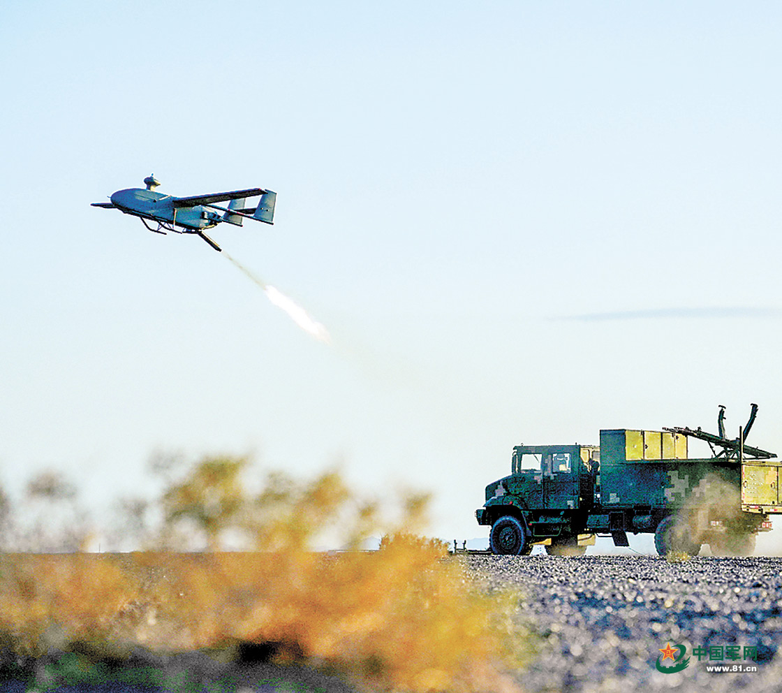 夕阳西下,无人机操作员操控无人机隐蔽飞行,抵近目标区域上空展开侦察。指挥员根据回传信息,向正在机动转移的炮兵分队下达新的命令,对“敌”实施远程打击。各炮班就地开设阵地,在短时间内完成射击准备。伴着火炮震天怒吼,目标遭到摧毁。