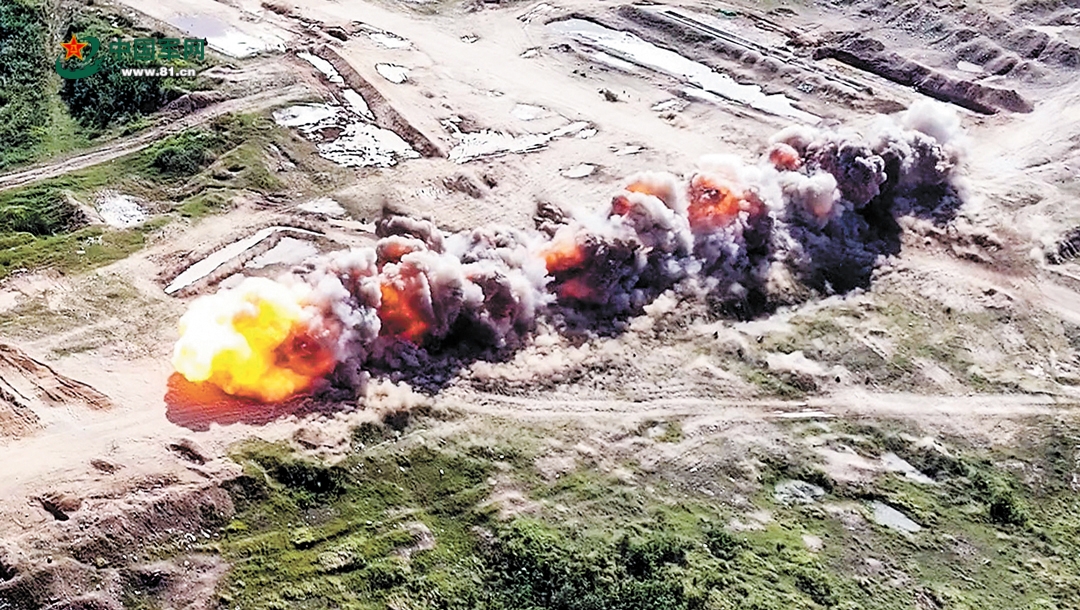 确认目标信息后,各作战要素协同出击。“发现‘敌’火力点!”接到“敌情”通报,突击车组乘员反应迅速,密切协作完成弹药装填、测距瞄准。随着车长下达射击口令,炮弹破膛而出,“敌”火力点被顺利拔除。在密集火力的掩护下,工兵分队果断前出,利用综合扫雷车进行破障,成功开辟通路。卫勤和抢修分队也紧随其后,根据战场态势及时抢救“伤员”、抢修装备。
