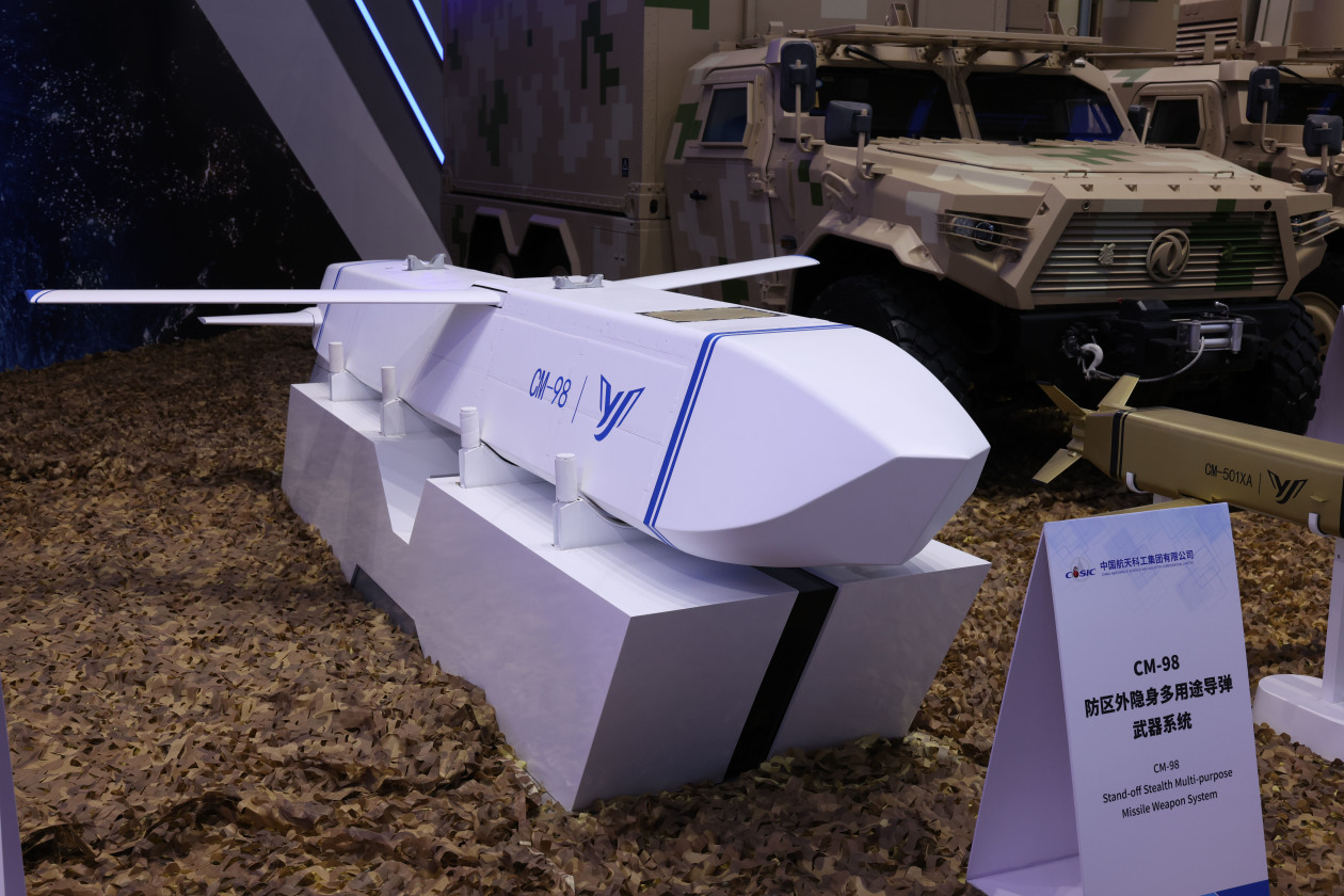第十五届珠海航展于11月12日正式开幕,《环球时报》记者在本届航展上注意到,在中国最大的导弹武器研制单位——中国航天科工展台,一款名为CM-98的隐身飞航导弹武器系统首次亮相,结合本届航展上中国航天科工推出的超音速飞航导弹和“亚超结合”飞航导弹,目前国际公认的两种突防技术路径的飞航导弹在第十五届中国航展上全部展出,相关专家向《环球时报》记者表示,这充分展现出中国飞航导弹技术路径丰富、谱系齐全的特点。