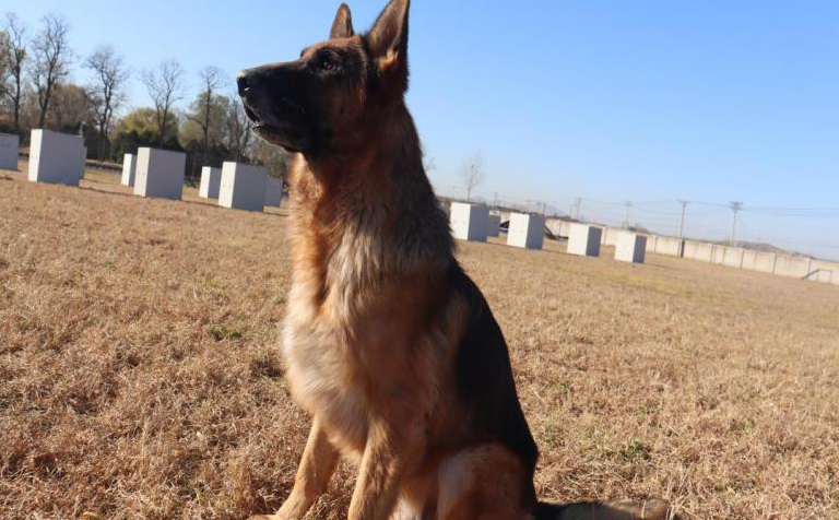 一号犬“蓝天”,雄性德国牧羊犬,2017年3月出生,是一只搜爆犬,身体状况良好,性格温顺,体格雄健,服从性好,擅长箱体搜爆、穿越障碍,数次参加国家大型会议安保任务。