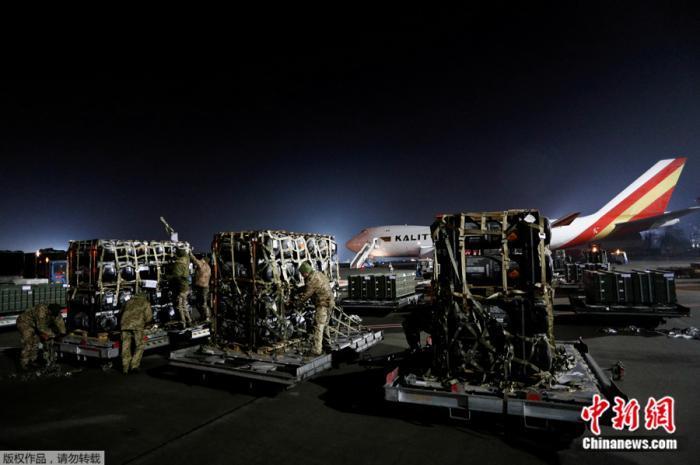 当地时间2022年2月10日,美国飞机将军事援助物资运抵乌克兰基辅鲍里斯波尔国际机场。