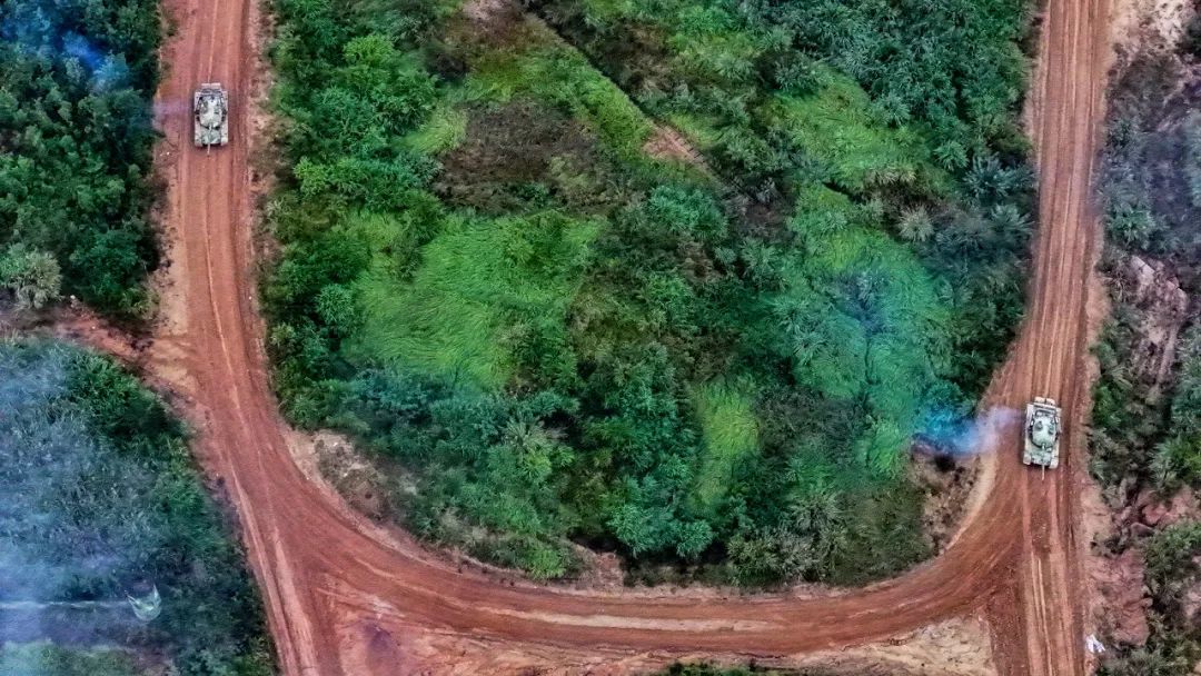 装甲车在雨雾中跃进冲击
