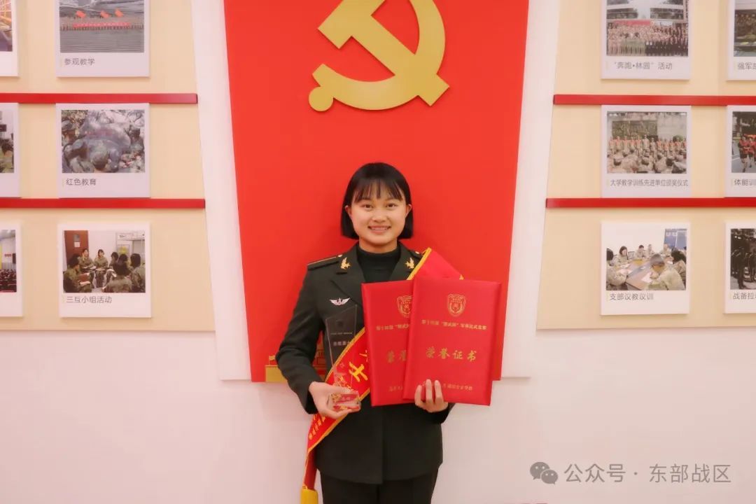 罗思丽——湖南邵阳人,1999年5月出生,2019年9月入伍,东部战区陆军某旅中士。入伍5年多,她在体能、专业和学科竞赛中获奖无数,先后被评为“四有”优秀士兵、“四有”优秀学员,荣立三等功一次,被陆军工程大学通信士官学校授予“精英奖”,是战友们眼中的“六边形战士”。