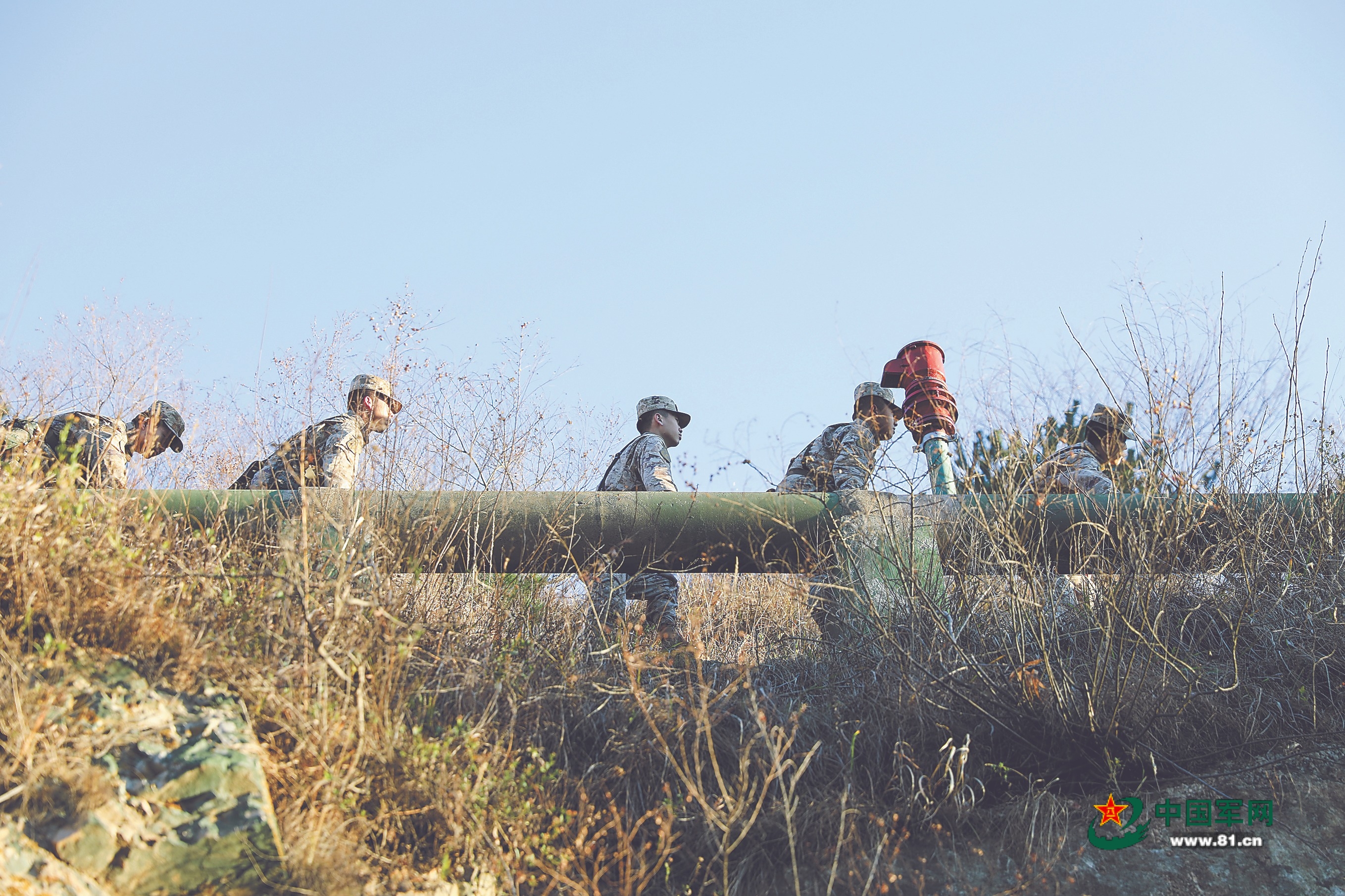 官兵巡查管线设施。