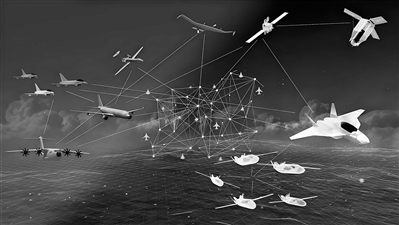 助力无人作战装备高效应用。通过更高速率、更低延迟的无线技术,无人机、无人车、无人艇等一系列无人作战装备作为通信系统中的重要节点,打破以往“平台—系统—平台”的单链式通信结构,能够直接将各自收集到的数据和信息传输给其他节点和指挥系统,实现高效实时的互联互通和信息共享,形成一张庞大的战场信息网络。人工智能技术则为无人系统带来了智能化的提升,通过应用机器学习、深度学习等算法,系统能够根据任务需求进行决策和规划,协调不同类型的无人装备,实现无人集群协同作战,其中最为典型的代表就是无人机“蜂群作战”。