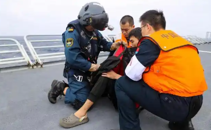 近日,一名渔民在某海域作业时突发疾病,急需救助。接到上级命令,在附近海域航行的海军青海湖舰随即展开救援行动。