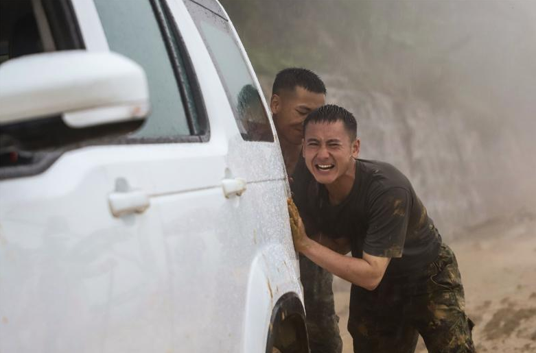 某边防连官兵:2024年8月中旬,台风“摩羯”肆虐,驻地群众车辆陷在道路中,连队官兵接到求助后,立即冒雨出动,救助被困车辆。