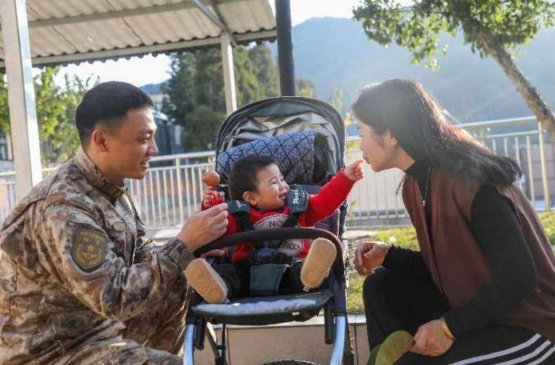 冯显凇:2024年2月6日,妻子带着刚满1岁的孩子来队探亲,我们一家三口团聚在边关,那段时光无比温馨,感觉空气中都弥漫着幸福的味道。