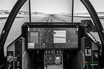 在座舱显示方面,战机采用“一平三下”的设计方式,即通过“一个平视显示器、三个综合显示器”来提供主要信息。平视显示器是为解决飞行员座舱内外观察矛盾而研制的多功能光电显示仪表,其基本原理是,将原来显示在仪表上的重要信息,如速度、飞机姿态、敌我信息等,利用光学反射直接投射在飞行员眼前的一块特殊玻璃上,显示在人眼焦距的无限远处。