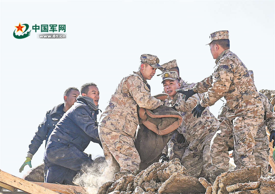 1月7日,西藏日喀则军分区官兵紧急展开救援。王乾摄
