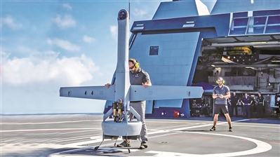 美国一家初创公司在美海军“迈克尔·蒙苏尔”号驱逐舰上试飞其研制的无人机。