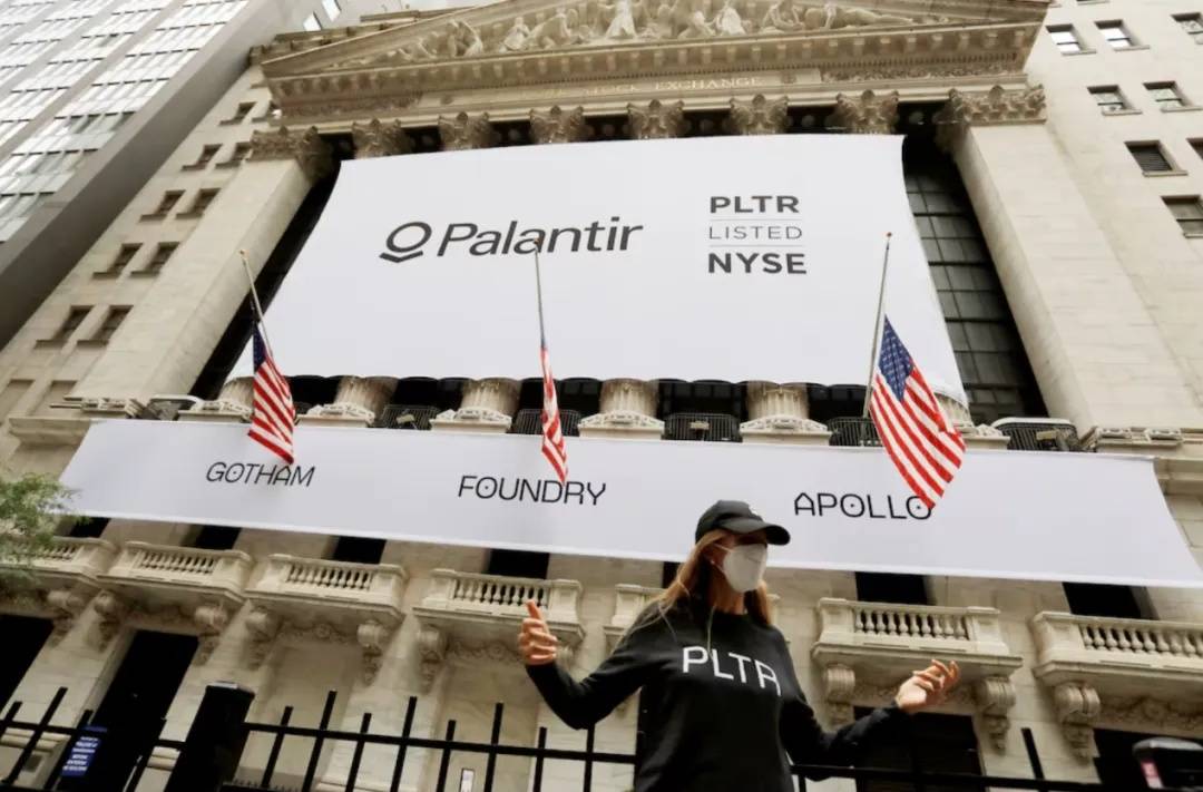 帕兰蒂尔公司IPO上市当日,该公司员工在纽约证券交易所前的留影。