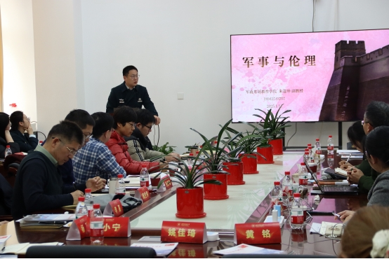 国防科技大学军政基础教育学院朱道坤副教授交流军事与伦理关系。