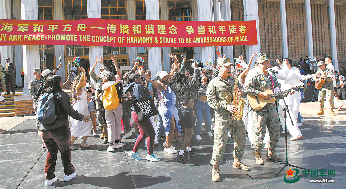 访问南非期间,和平方舟医院船官兵代表赴当地学校开展文化联谊活动。