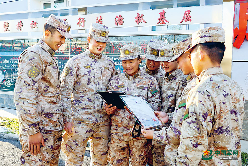这张凝聚了官兵们心血的证书,在每个人手里传递,大家脸上充满了抑制不住的喜悦。