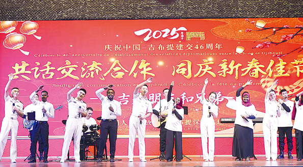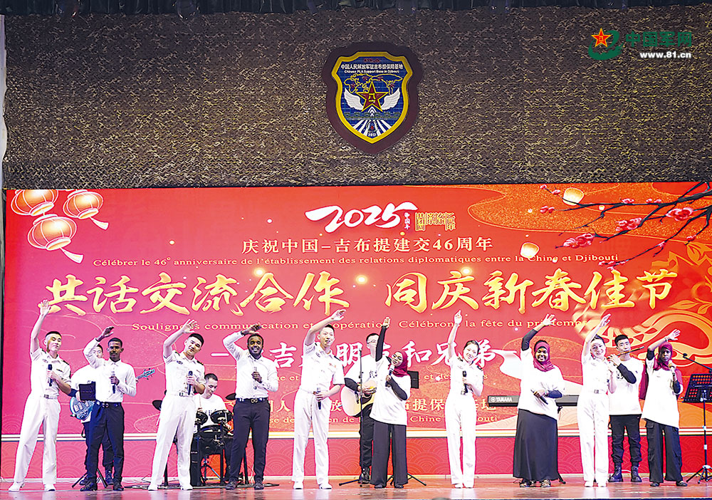 当地时间1月23日晚,我驻吉布提保障基地举办以“共话交流合作 同庆新春佳节”为主题的春节文化交流活动。来自吉布提军政部门、驻吉外军、我驻吉使馆及中资企业等100余位嘉宾应邀参加。
