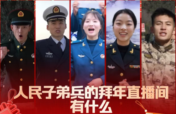 人民子弟兵的拜年直播间是什么样的?都有哪些“特产”?快来直播间接收来自人民陆军、人民海军、人民空军、中国火箭军、人民武警的新年祝福吧!“战位有我在,请祖国和人民放心!”(郭秉鑫、沈先文、马龙、周鹏程、冯刘俊、周玮、葛树蔚、陈萍、黄金奎、金远洋、李健斌、龙嘉乐)