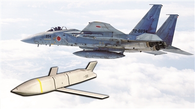 外媒发布的日本航空自卫队F-15战斗机和JASSM导弹图。