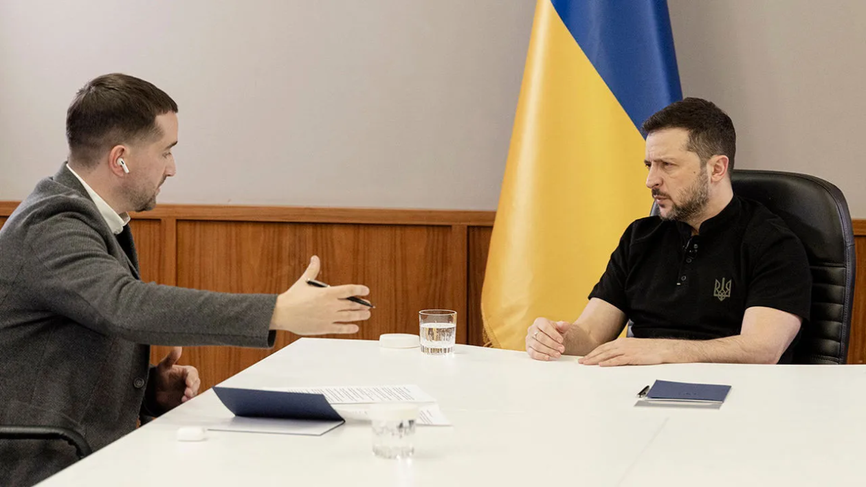 泽连斯基11日在基辅接受英国《经济学人》杂志采访。图源:英媒