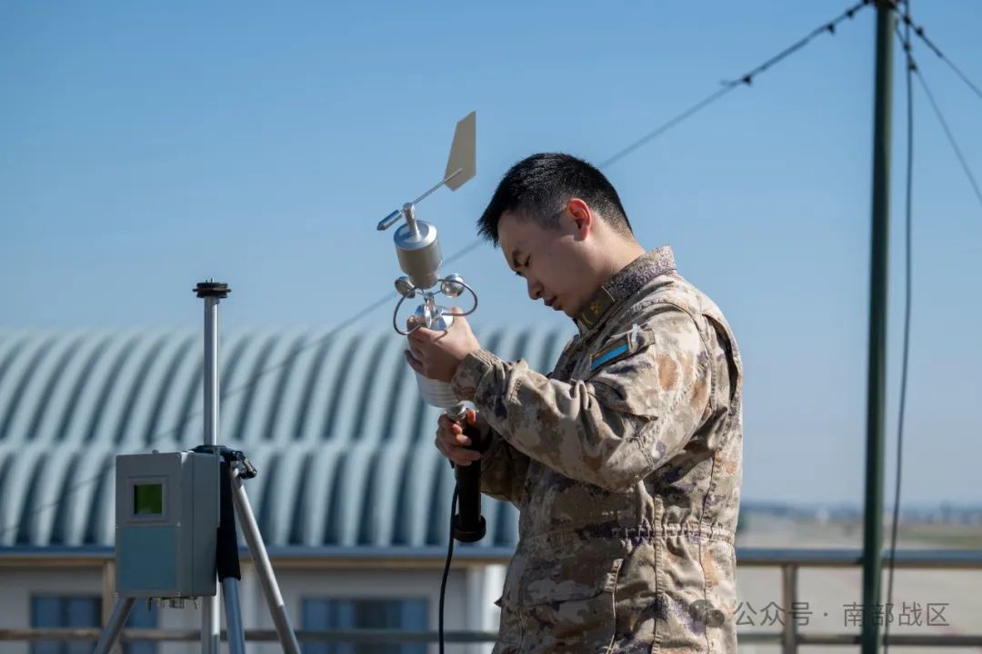 清晨时分,随着机务值班员一声哨响,飞行训练保障迅速展开,地面保障官兵在起飞前对战机进行最后检查。气象观测员在塔台顶端架设气象仪,随时观察靶场区域各项气象数据,保障实弹射击训练顺利展开。