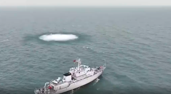 南海某海域,海军某扫雷舰大队赤水舰、河间舰组成舰艇编队海上训练。面对浮雷,赤水舰主炮稳定瞄准射击,成功将其清除。面对沉底雷,水下机器人快速向目标方位机动,潜藏在海底的水雷被成功引爆。看现场致敬猎雷英雄!(记者李海龙 宋欣博 吴润璋)
