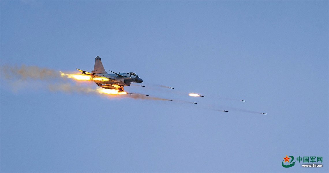 实弹射击训练展开后,战机很快进入攻击航线。飞行员根据风向、风速等要素不断修正航行诸元,寻找最佳攻击角度和时机。在瞄准目标的瞬间,飞行员果断按下发射按钮,火箭弹拖着尾焰直扑目标。